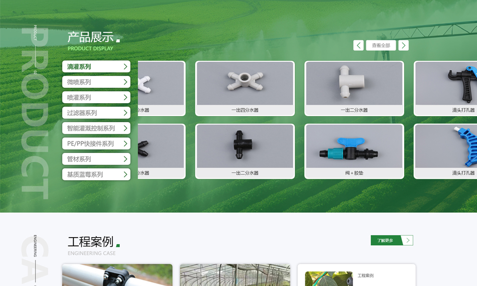 公司作為農(nóng)業(yè)灌溉領(lǐng)域中的頭部企業(yè),設(shè)備先進(jìn),技術(shù)力量雄厚,年產(chǎn)量8000噸,主營(yíng)滴灌系列、微噴系列、噴灌系列、過(guò)濾器系列、水肥一體化灌溉控制系列、PE/PP/PVC快接件及管材系列、基質(zhì)藍(lán)莓系列、水處理系統(tǒng)等系列,數(shù)百個(gè)產(chǎn)品種類。產(chǎn)品質(zhì)量始終處于同行業(yè)先進(jìn)水平,受到廣大客戶的高度贊譽(yù),未來(lái),我們將在農(nóng)業(yè)灌溉領(lǐng)域,不斷探索,不斷發(fā)展,為中國(guó)三農(nóng)事業(yè)做出更大的貢獻(xiàn)。